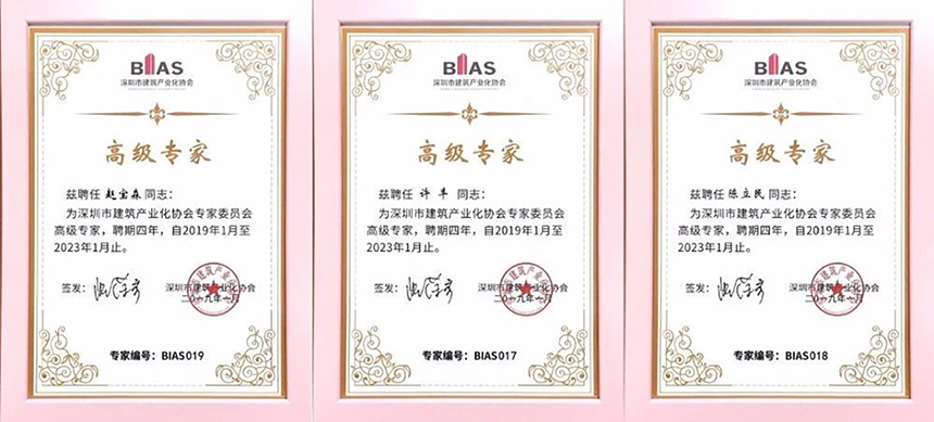 筑博设计赵宝森、许丰、陈立民三位专家荣获高级专家证书,筑博设计杨晋、焦践、罗庆新晋为入库专家;